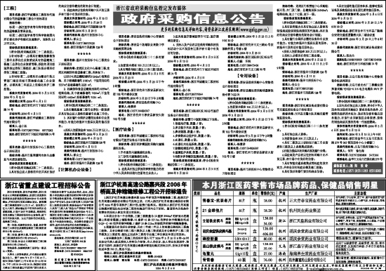 更多的采购信息及详细内容,请登录浙江政府采购网(www.zjzfcg.gov.cn)