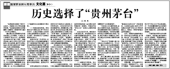 这是历史对“贵州茅台”的选择,是历史把一次又一次千载难逢的机遇都给了茅台酒,使之能凭借历史的舞台展现自身的魅力与风采。