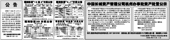 中国长城资产管理公司杭州办事处拥有对宁海市越溪乡农业服务总公司等8户企业债权合计849.31万元,其中本金416.31万元,利息433万元。我办拟对上述债权进行公开处置,自2006年9月1日起至2006年9月8日公示期内,我办受理该资产处置有关异议与咨询,若有意者请以书面形式向我办报价。