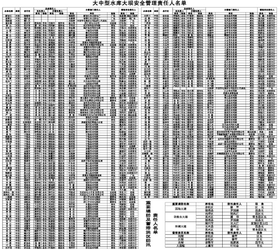 水库名称 库型 县市区 政府责任人 主管部门责任人 管理单位责任人