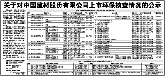 关于对中国建材股份有限公司上市环保核查情况的公示