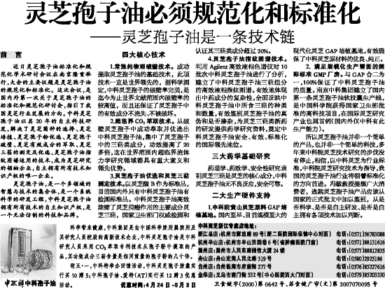 灵芝孢子油必须规范化和标准化
