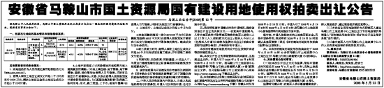 安徽省马鞍山市国土资源局国有建设用地使用权拍卖出让公告