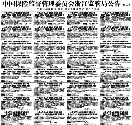 中国保险监督管理委员会浙江监管局公告