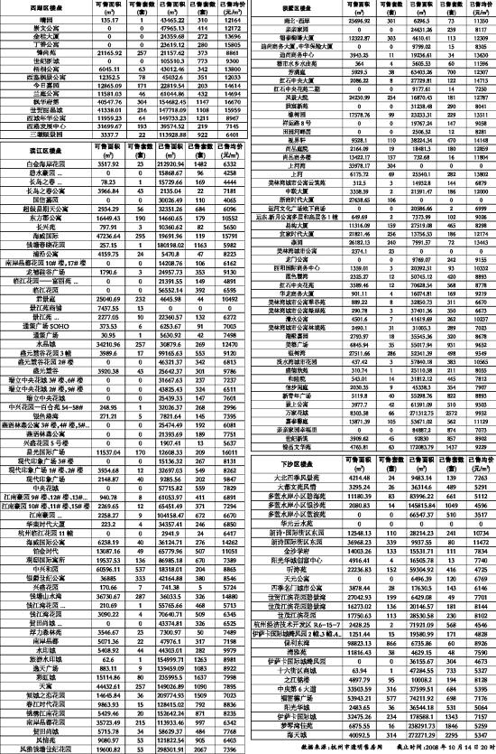 数据来源:杭州市透明售房网 截止时间:2008年10月14日20时