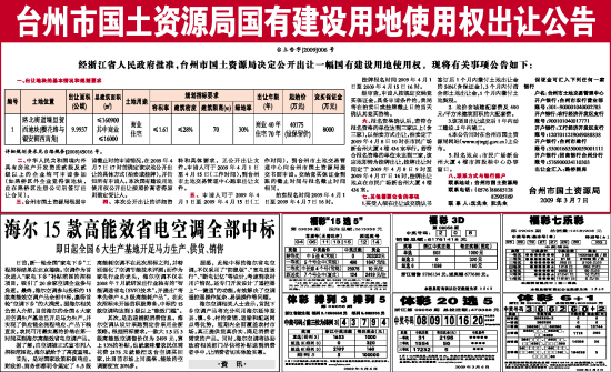 三、台州市国土资源局根据申请截止时的申请情况,在2009年4月7日17时前确定该宗地公开出让的具体方式(拍卖或挂牌),并告知所有申请人。本次国有建设用地使用权公开出让按照价高者得原则确定受让人。