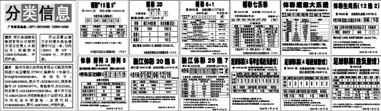更多信息查询:浙江体育彩票网 www.zjlottery.com