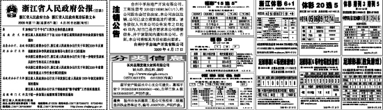 更多信息查询:浙江体彩网www.zjlottery.com。2009年4月19日