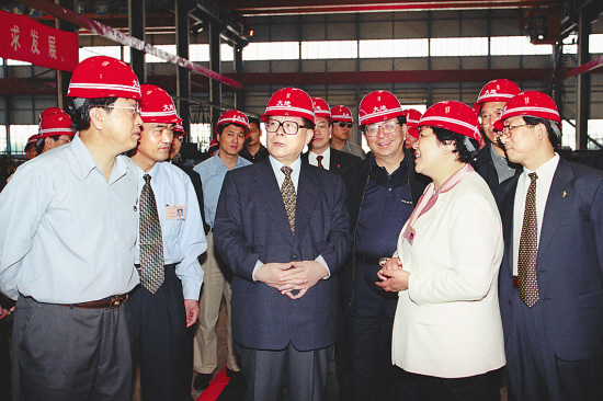 2000年5月,江泽民考察杭州大地网架制造有限公司。
