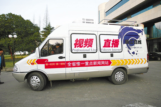 浙江在线新闻网站的网络视频直播车,配置车载无线通讯系统,具有视频访谈、在线直播、资料编辑、稿件传送等先进功能。