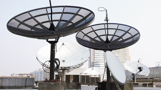 集团大楼上的卫星天线,实时接收新华社文字和图片,并向全省代印点传输当天报纸版面,实现全省同步印刷。