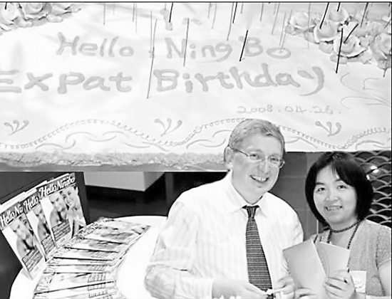 图为达尔文夫妇在组织宁波的外籍人士生日派对。