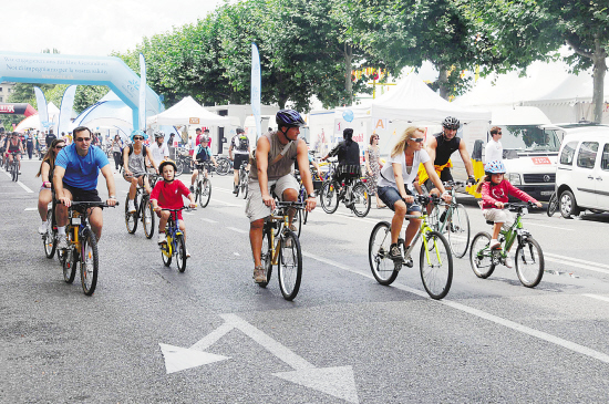 | 8月2日,瑞士日内瓦湖边交通干线和市区部分道路禁止机动车通行,在全长26公里的路段举行第五届“减速慢行”活动。市民和游客在机动车道上骑自行车、步行,以“减速慢行”方式休闲度假,同时增强环保意识。图为当日在日内瓦,参加“减速慢行”活动的人结队骑行。 新华社发 |