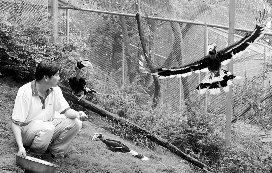 杭州萧山村民高剑富为北京、上海等地的动物园和公园驯养鸟类,去年销售额达到1100万元。邵全海 张德良 汤盈楠 摄