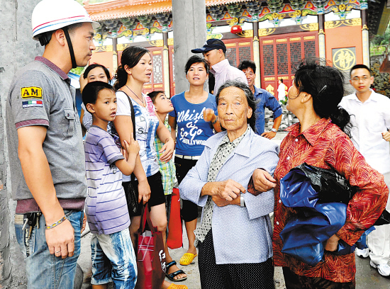 昨天下午5点多在苍南舥艚镇一个安置点,村民们被安置在村文化中心。本报记者 梁臻 摄