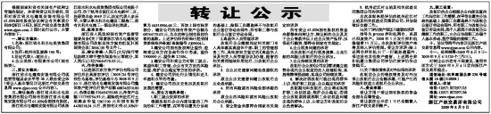 根据国家和省有关国有产权转让管理的规定,并受转受让双方委托,我所对浙江省水电建筑安装有限公司61.02%国有股权协议转让有关事项分别在《浙江日报》、浙江产权交易信息网www.zjpse.com上同时进行公示。主要内容如下: