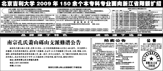 北京吉利大学2009年150余个本专科专业面向浙江省限额扩招