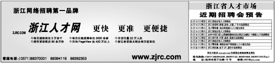 8月16日(周日) 2009年浙江省人力资源经理协会会员单位(公益性) 中高级人才专场招聘会