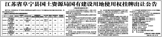 四、本次挂牌出让的详细资料和具体要求,见挂牌出让文件。申请人可于2009年8月25日至2009年9月14日,到阜宁县行政审批中心二楼国土局土地交易服务中心申购挂牌出让文件。