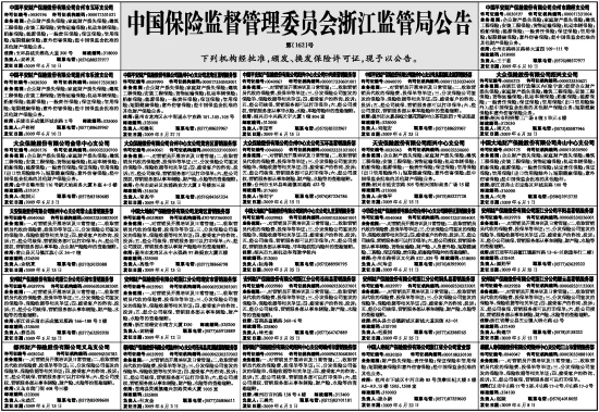 中国保险监督管理委员会浙江监管局公告