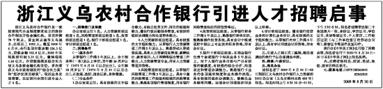 我行在《中华英才网》也刊登了招聘启事,报名者也可于2009年8月24日~30日在《中华英才网》上报名投档。