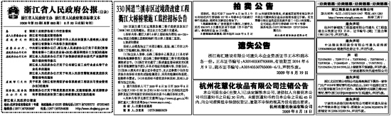 受委托,我公司定于2009年8月28日上午10时在杭州市劳动路127号4号楼本公司拍卖厅举行拍卖会,现将有关事项公告如下: