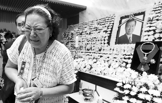 图为8月19日,在韩国首都首尔,一名韩国妇女向已故前总统金大中的遗像献花后痛哭。 新华社发