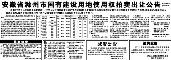 安徽省滁州市国有建设用地使用权拍卖出让公告