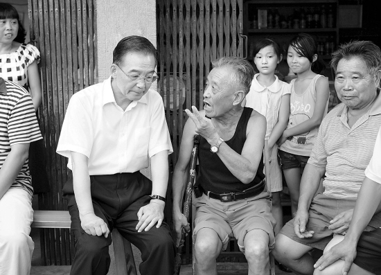 上图:8月22日,中共中央政治局常委、国务院总理温家宝在丽水农村考察,了解当地农民生产生活情况。 本报记者 徐斌 摄