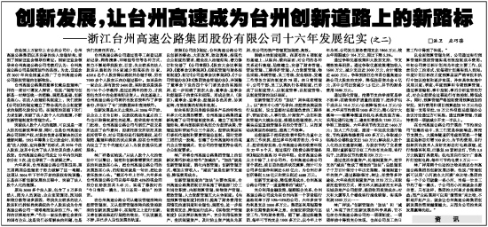 ——浙江台州高速公路集团股份有限公司十六年发展纪实 (之二)