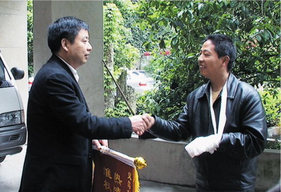 伤残农民工获得权益维护后给义乌市总工会送来锦旗。
