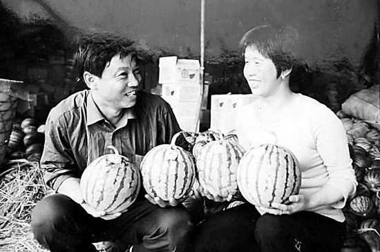 彭友达刚开始种瓜时的情景(资料照片)。吴敏力翻拍