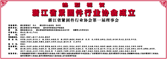 祝贺单位: 中国机械通用零部件工业协会紧固件专业协会;全国工商联五金机电商会紧固件专业委员会;广东省紧固件行业协会;重庆市紧固件行业协会;香港螺丝业协会;宁波市紧固件工业协会;