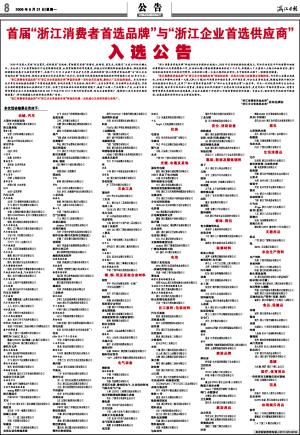 首届“浙江消费者首选品牌”与“浙江企业首选供应商”入选公告