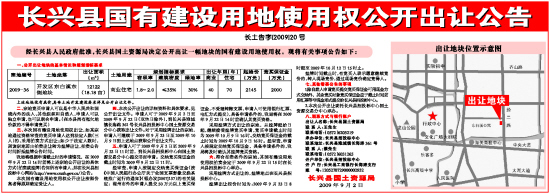 长兴县国土资源局 2009年9月2日