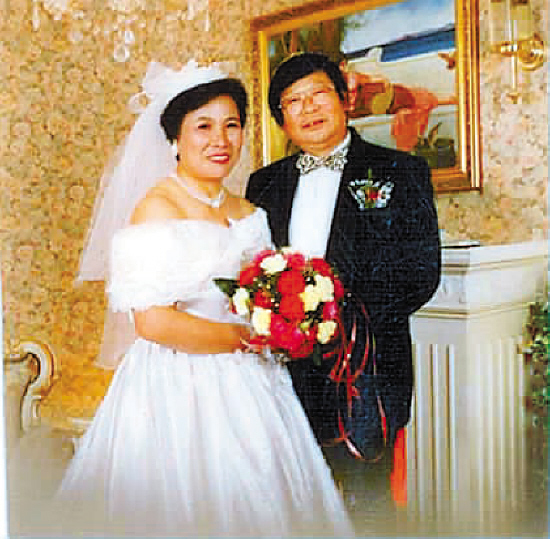 ↑ 1993年结婚三十周年,去影楼补拍了婚纱照。