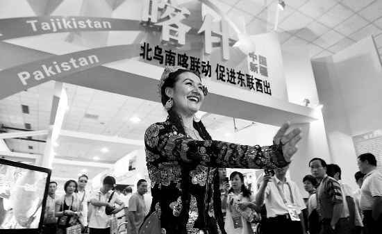 | 9月1日,乌洽会喀什展台上一位维吾尔族演员翩翩起舞吸引客商们观看。当日,我国西部最大的国际经贸盛会——第18届乌鲁木齐对外经济贸易洽谈会按期开幕。来自29个国家和地区的500名外商和来自国内各省、区、市的参展团让新疆会展中心成为人流、物流、信息流的海洋。 17年中,在乌洽会上,新疆对外经济贸易累计成交总额达317亿美元;内联和国内贸易项目签约超过7400亿元人民币。乌洽会已成为我国西北地区乃至中亚区域规模最大的综合性国际经贸盛会,成为我国扩大向西开放、沟通与世界各国特别是中西南亚国家经贸往来的重要窗口。 新华社记者 赵戈 摄 |