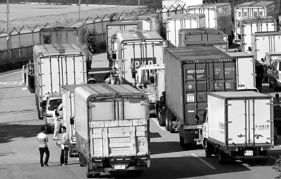9月1日,韩国车辆在坡州准备通过边境前往朝鲜开城工业园区。 新华社发