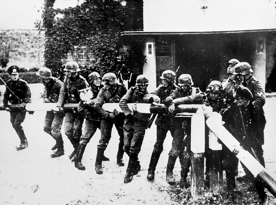 图为1939年9月1日,德军在拆除德波边界上栏杆的资料照片。