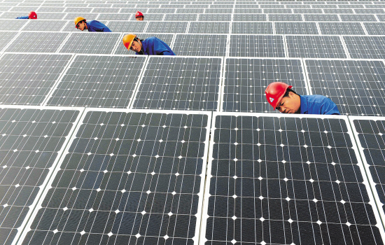 | 昨天,工人正在房顶安装太阳能电池。由浙江正泰太阳能科技有限公司建造的我省首个兆瓦级光伏电站项目落户杭州能源与环境产业园,安装在园区的19幢厂房的屋顶,总面积达8000多平方米,预计每年可以发电200万度。 本报记者 梁臻 摄 |