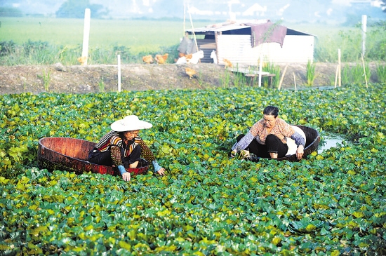 又到了菱角上市的季节。近日,嘉兴市油车港镇马厍村村民正忙着采摘南湖菱,预计今年南湖菱销售将有较好的收益。