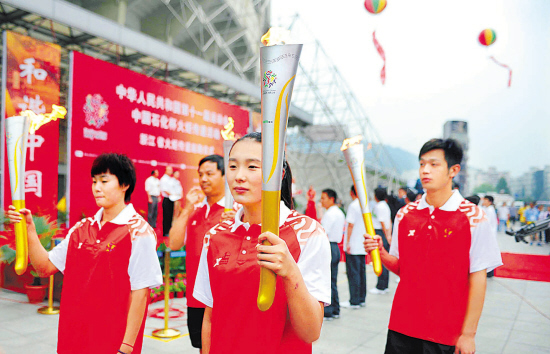 全运会火炬昨在浙传递