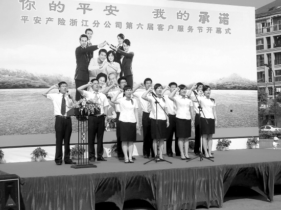 中国平安产险浙江分公司第六届客服节上周日在杭州拉开序幕,公司理赔和销售人员代表向社会承诺:为客户提供专业、优质的服务。