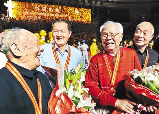 | 在昨日举行的浙江省老干部庆祝新中国成立60周年大会上,佩戴着“庆祝中华人民共和国成立60周年纪念章” 的老同志们喜悦之情溢于言表。 本报记者 黄曙林 梁臻 摄 |