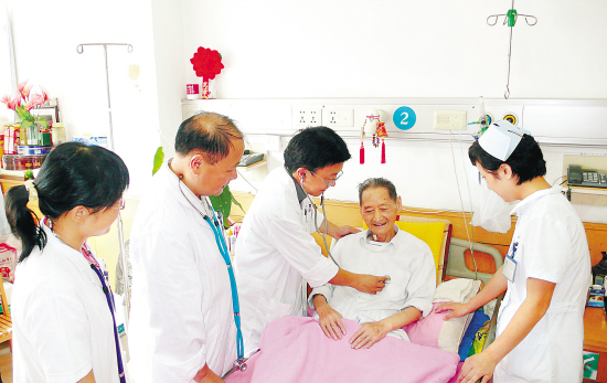 国庆将临,浙医一院城站院区干部病房的医务人员们为在这里疗养的老革命检查身体,让他们感受到组织的关怀。