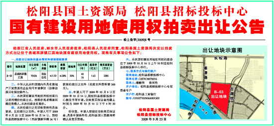 六、本次国有建设用地使用权拍卖会定于2009年10月16日上午10时在松阳县招标投标中心举行。