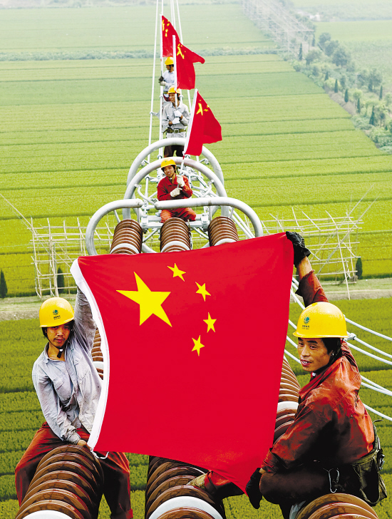 | 为庆祝新中国六十华诞,我省各地群众举行各种活动,为祖国母亲祝福。 左图:近日,浙江省送变电工程公司的工人在45米高空展示一面面五星红旗。梁臻 王锦阳 摄 右上图:昨日,金华市环城小学的1600名师生举行升国旗、唱国歌活动。 时宽兵 摄 右下图:9月29日,杭州古东社区60名新中国同龄人举行集体生日派对。 梁臻 摄 |