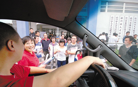 10月9日上午,嘉兴市人力资源市场门口,一家企业“抢”到了8名操作工,乐滋滋地将工人请上了等候多时的商务车。据悉,随着经济回暖,不少企业用工需求增加,节后上班第一天,我省不少企业来到人力资源市场招收员工。