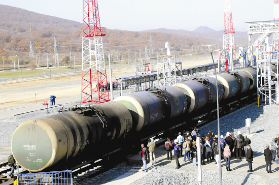 10月22日,俄罗斯远东开行的首班原油专列抵达目的地——滨海边疆区港口城市纳霍德卡。 新华社发