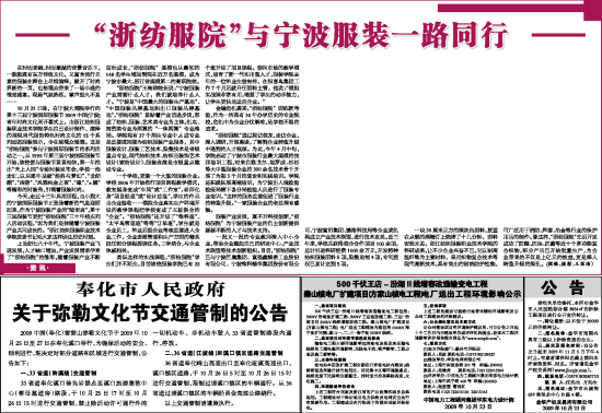 2009中国(奉化)雪窦山弥勒文化节于2009年10月25日至27日在奉化溪口举行,为确保活动的安全、顺利进行,现决定对部分道路和区域进行交通管制,公告如下: